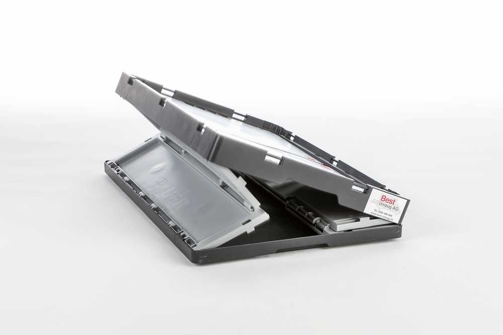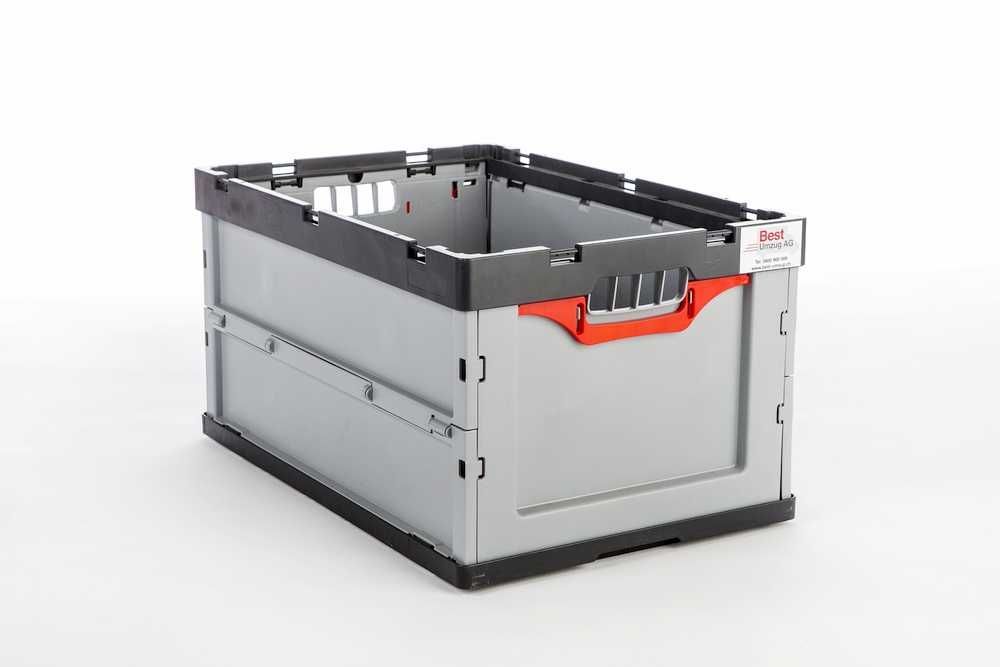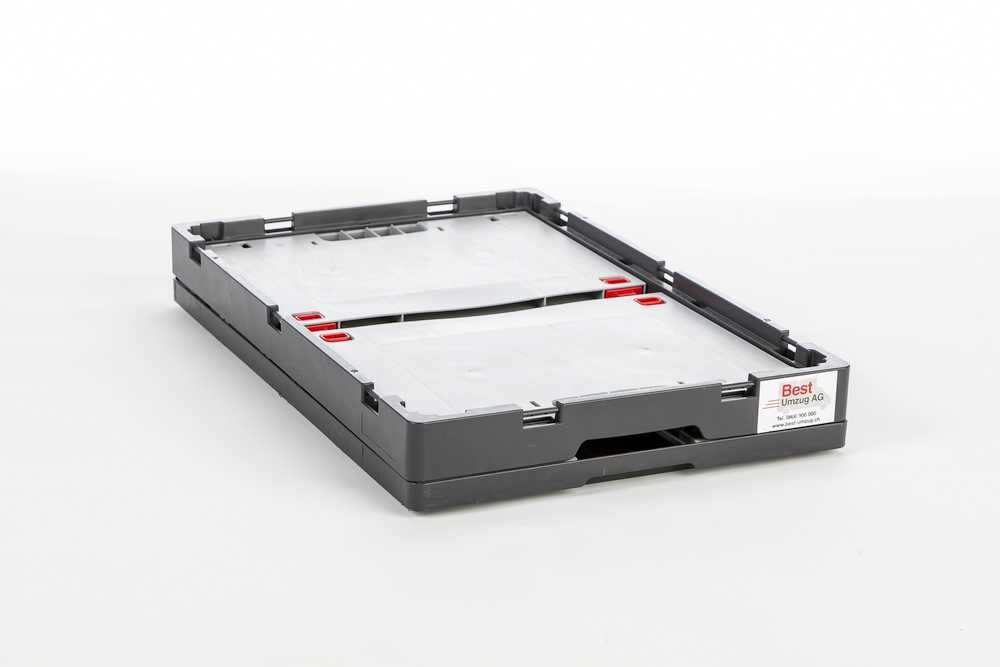 Stabile Mietbox für sämtliches Zügelmaterial. Mit einem Handgriff auf- und wieder zugeklappt.