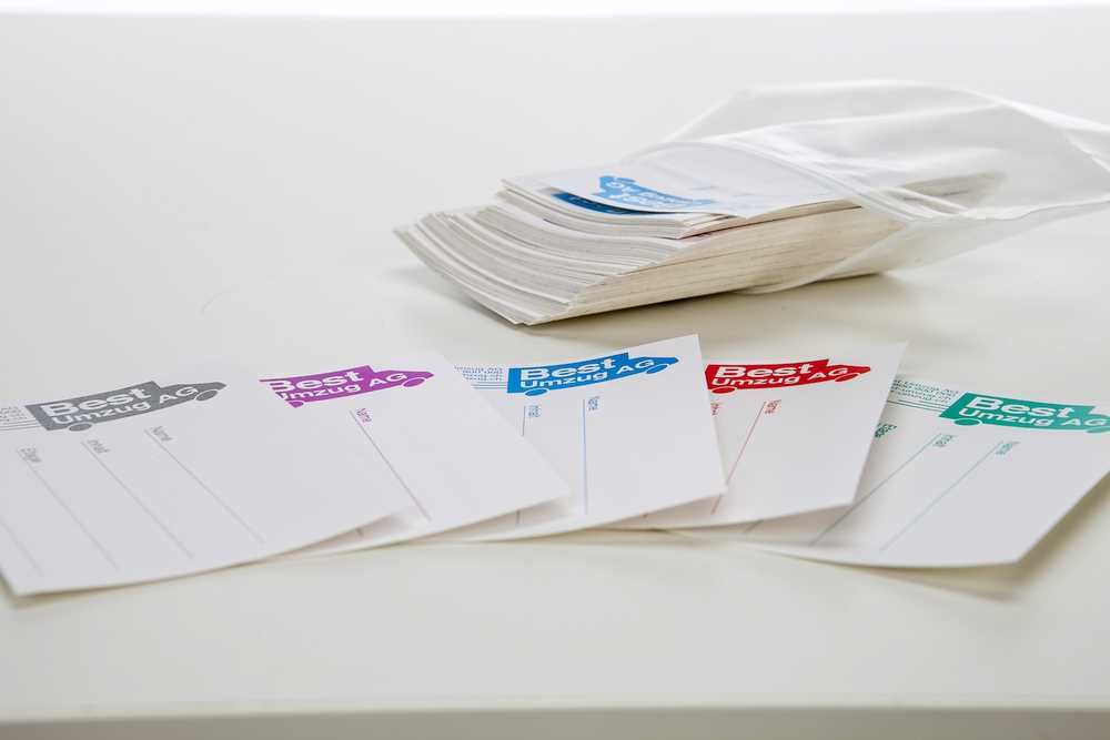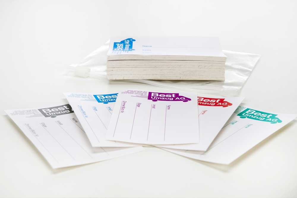 Unsere Etiketten können auf Möbel und Kartons aufgeklebt und spurlos wieder entfernt werden (weicher Leim).